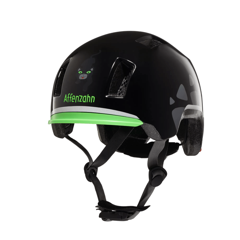Mit dem durchdachten Affenzahn Helm bist du gut sichtbar und erstrahlst im passend tierischen Look zum Fahrrad! Der Helm erfüllt die europäischen Sicherheitsstandards (zertifiziert nach EN 1078:2012 + A1:2012) und hat einen zusätzlichen Aufprallschutz vorne.
