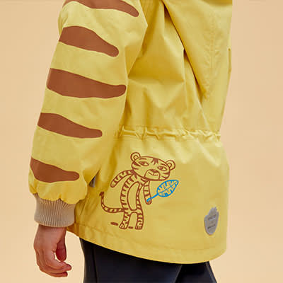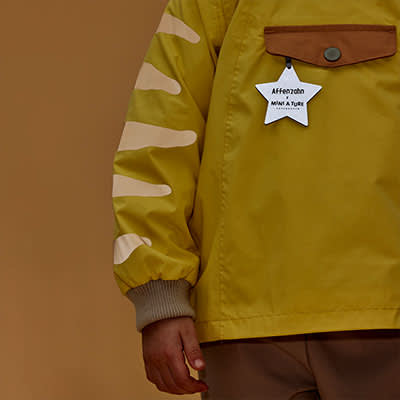 Die Wassersäule aller Affenzahn x Mini A Ture Produkte der Sommerkollektion 2023 beträgt 10.000 mm, somit ist an regnerischen Frühlings- und Sommertagen für trockene Kleidung gesorgt.