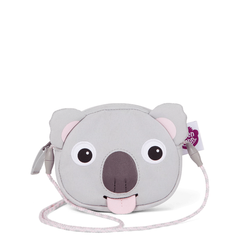 The Affenzahn wallet with the sassy pull-out tongue watches little treasures like a hawk. The click lock on the lanyard opens if it catches on something. This model is from the 2024 collection.
