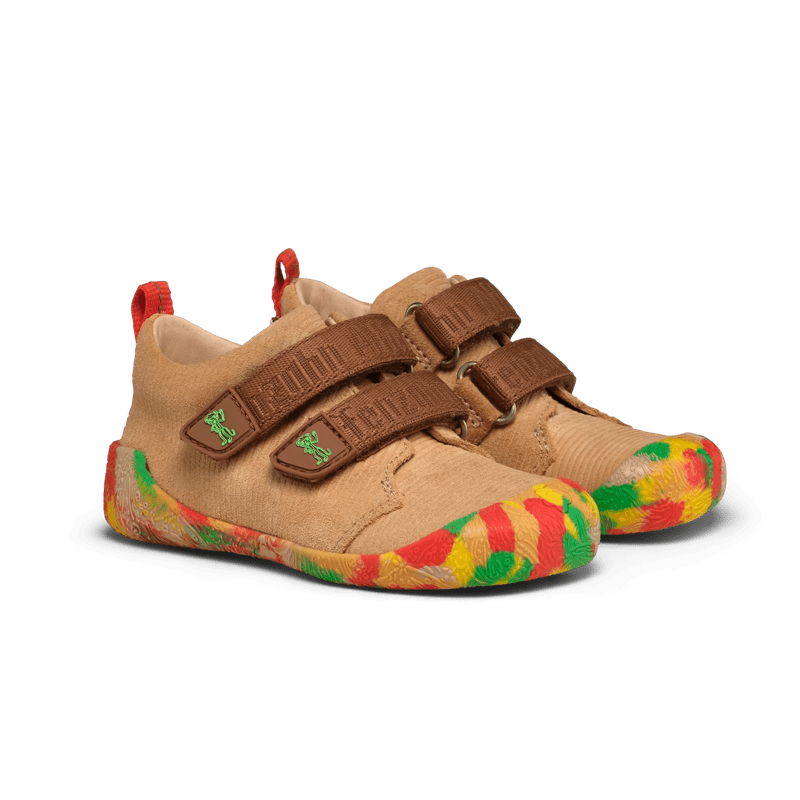 Barefoot shoes as prewalkers? Sure! Our classic prewalker Leather Walky with easy-on hook-and-loop straps make the perfect footwear for those first steps. The sole reaches over the toes for extra protection. Breathable leather keeps feet comfy.