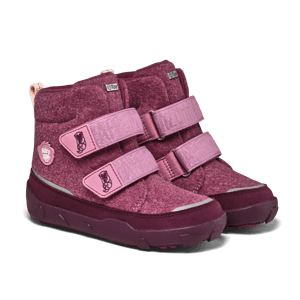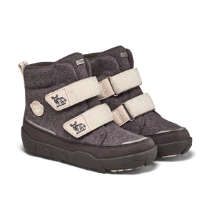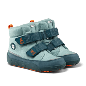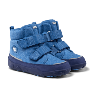 Waterproof barefoot boot with warm lining for the winter with recycled wool and hook and loop fasteners.